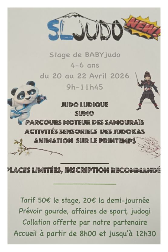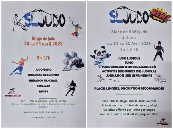 STAGE DE JUDO DE PRINTEMPS DU 24 AVRIL AU 28 AVRIL 2023